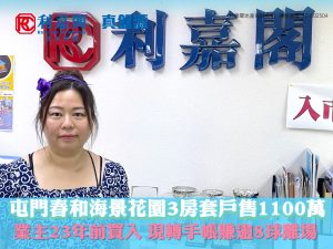 屯門春和海景花園3房套戶售1100萬 業主23年前買入 現轉手帳賺逾8球離場