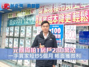 元朗尚柏1房戶280萬沽 一手買家短炒5個月 帳面獲微利