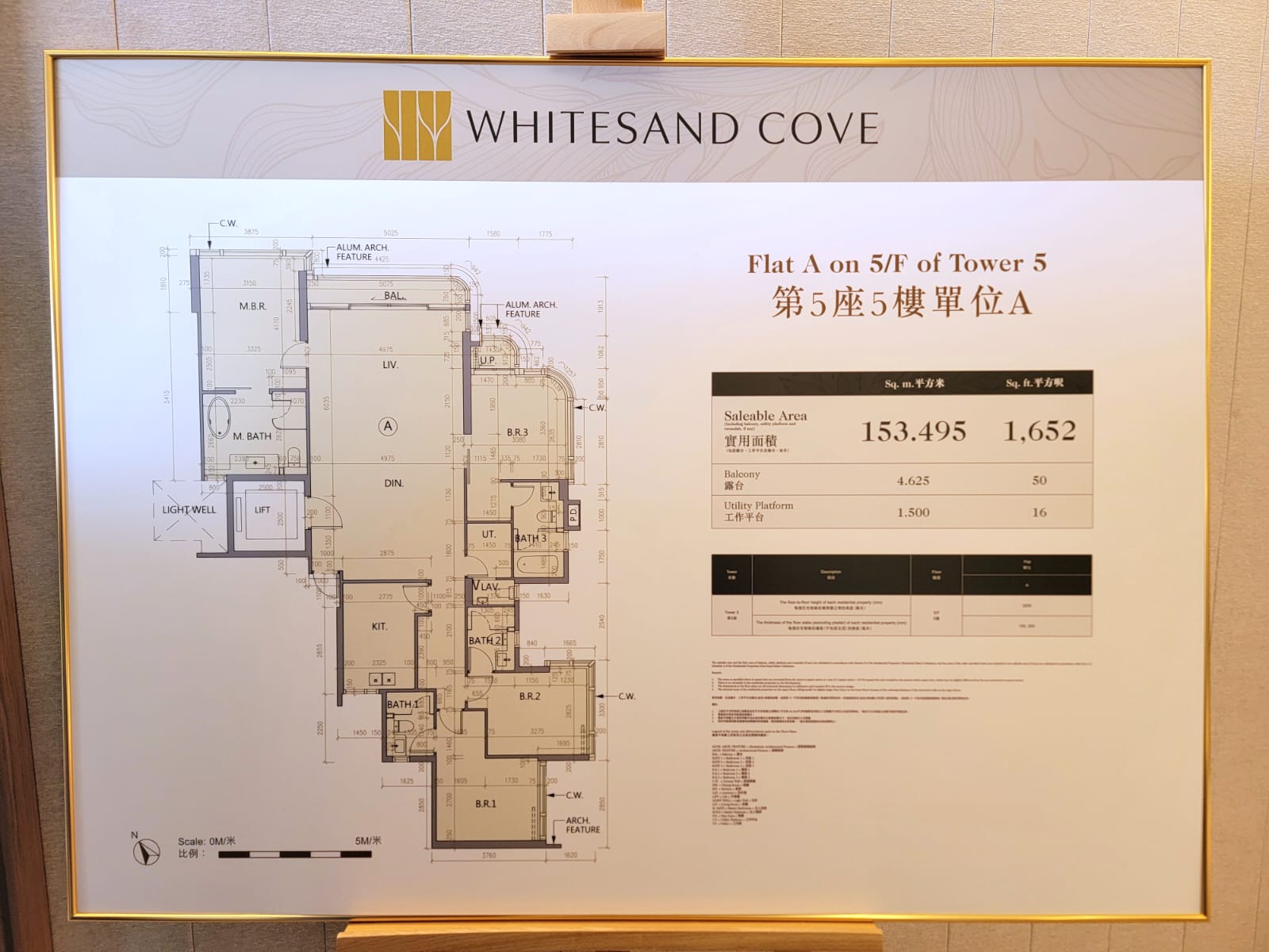 開放的經改動裝修連傢俬示範單位,為第5座5樓A室,實用面積1,652方呎,屬四房連四套房的大戶間隔。尊貴的一層一戶,更設有專屬電梯連接大堂及車庫層,私隱度十足。