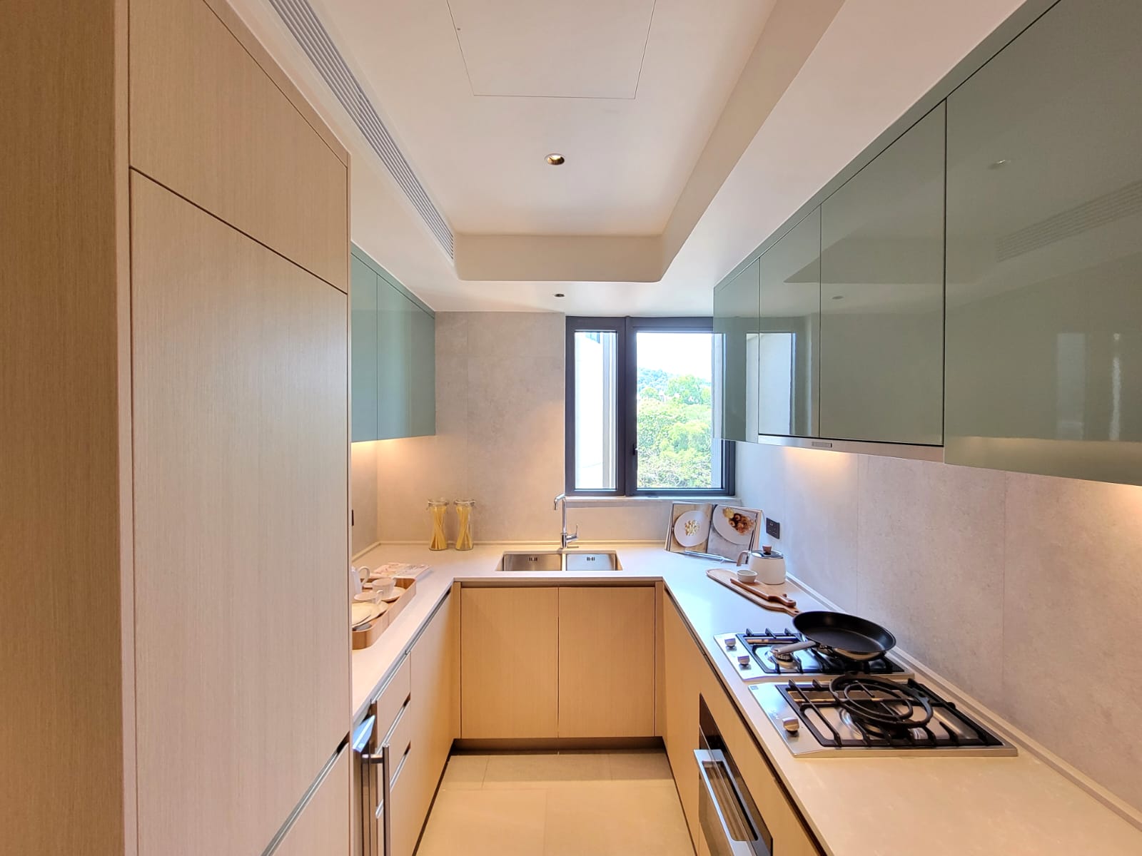 廚房設有寬敞U型工作枱,備餐及收納空間充足;更配備國際著名品牌Miele一系列廚具,包括煮食爐、雪櫃、蒸焗爐,以及法國品牌酒櫃,展現真正大戶配置,一應俱全。