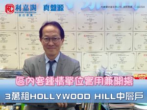 利嘉閣地產西半山-蔚然分行首席聯席董事張嘉榮(Calvin)稱,該行高級客戶經理馮國昌(John)日前促成西半山HOLLYWOOD HILL中層A室的二手租賃成交個案,單位實用面積約400方呎,採1房間隔,外望部份海景。