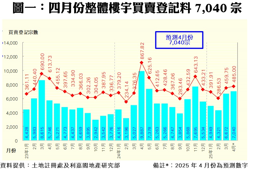 利嘉閣地產研究部主管陳海潮指出,一手新盤大旺,連帶二手市場亦轉熱,樓市小陽春已至,料四月在二手市場接力下,整體樓宇買賣登記仍可維持強勢。根據土地註冊處數據所得,2025年三月份全港共錄6,672宗樓宇買賣登記(數字主要反映二月中旬至三月上旬的樓市實際狀況),較二月份的4,321宗反彈54%,為連跌3個月後首度回升,創下近4個月以來高位;至於月內整體物業登記總值錄得459.75億元,按月反彈60%,創4個月最多。