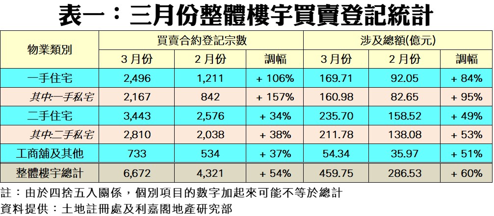 新盤激活市場 整體樓宇買賣漲逾五成 三月錄6,672宗 四月二手接力再突破