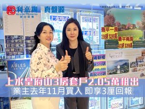 上水皇府山3房套戶2.05萬租出 業主去年11月買入 即享3厘回報