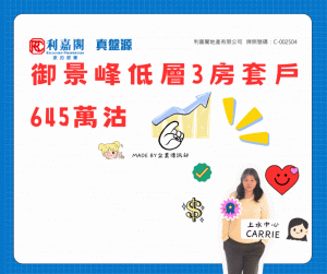 利嘉閣地產上水中心分行首席聯席董事黃靜顏(Yen)表示,該行客戶經理李文娟(Carrie)最新促成粉嶺御景峰低層J室的二手成交個案,單位實用面積約661方呎,屬3房1套間隔,外望開揚市景。