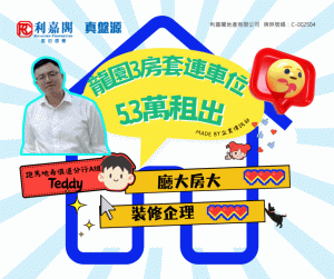 外區客鍾情單位廳大房大兼裝修企理 斥5.3萬元租東半山龍園3房套戶連車位
