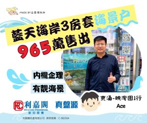 東涌藍天海岸3房套海景戶965萬沽 業主持貨9年 轉手帳賺137萬