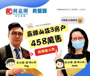利嘉閣地產天水圍-嘉湖山莊分行經理蕭啟諾(Tony)稱,天水圍嘉湖山莊4月錄得約28宗二手成交,其中該行高級客戶經理楊恩華(Annie)最新促成天水圍嘉湖山莊2期3座高層G室的二手成交個案,單位實用面積約548方呎,屬3房間隔,外望園景。