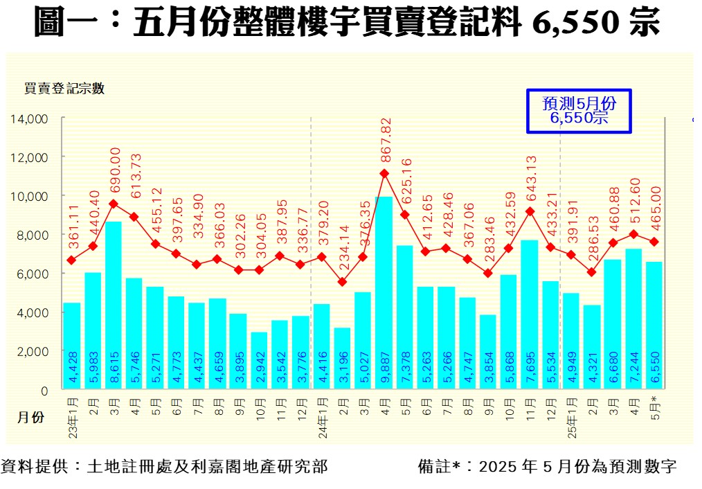 五月整體樓宇登記料回氣至6,550宗