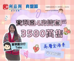 區內客3580萬購寶翠園4房雙套戶 業主持貨近23年 帳面大賺逾2454萬元
