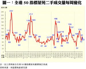 50指標屋苑上周錄83宗買賣 按周回落9%