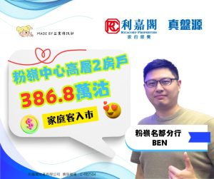 利嘉閣地產粉嶺名都分行聯席董事郭敏輝(Gary)稱,該行高級客戶董事張漢榮(Ben)最新促成粉嶺中心2期H座高層5室的二手成交個案,單位實用面積約366方呎,屬2房間隔,外望開揚景觀。