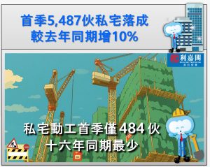 首季5,487伙私宅落成 較去年同期增一成 期內484伙私宅動工 創十六年同期新低