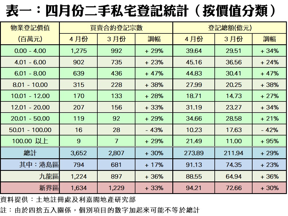四月二手私宅登記3,652宗 12個月最旺 本月料稍回氣 後市有力再回勇