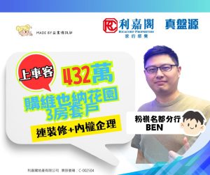 郭氏指出,新買家為年輕上車客,早前透過利嘉閣真盤源平台尋覓筍盤,見上述單位放盤,即聯絡代理預約睇樓。客人認為單位間隔四正,實用率高,加上附有裝修,內櫳企理,室內光猛,即落實洽購。業主原以480萬元放售物業,終以432萬元售出,折合實用面積呎價約6,516元。