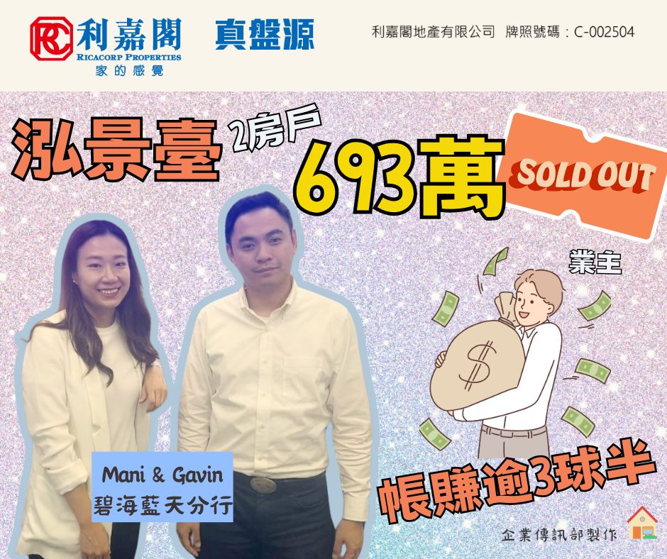 據悉,原業主於2007年以約337萬元購入單位,持貨至今沽出,帳面獲利約356萬元,期內物業升值約106%。