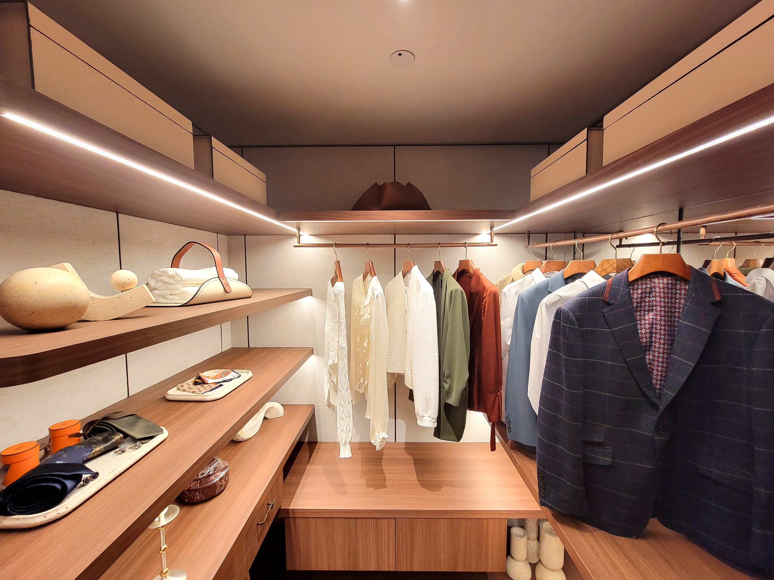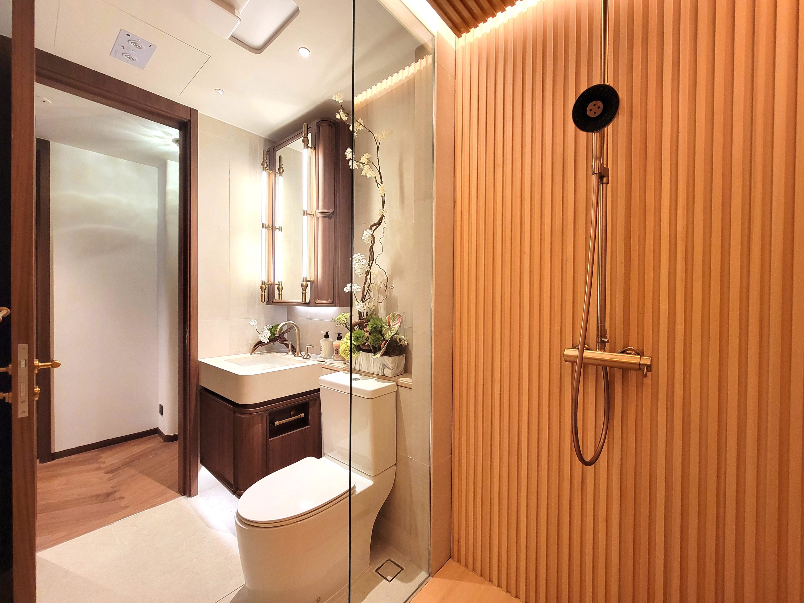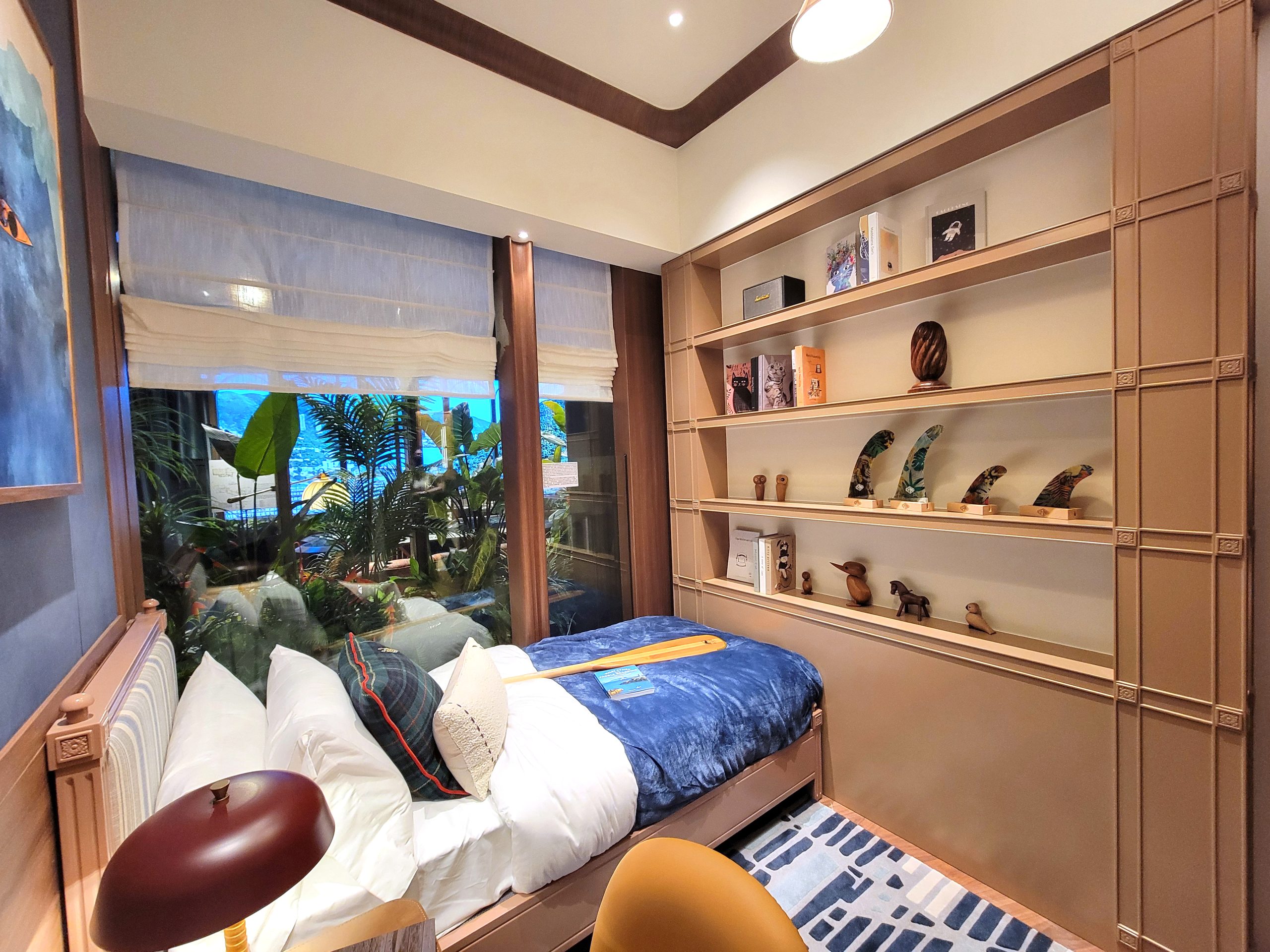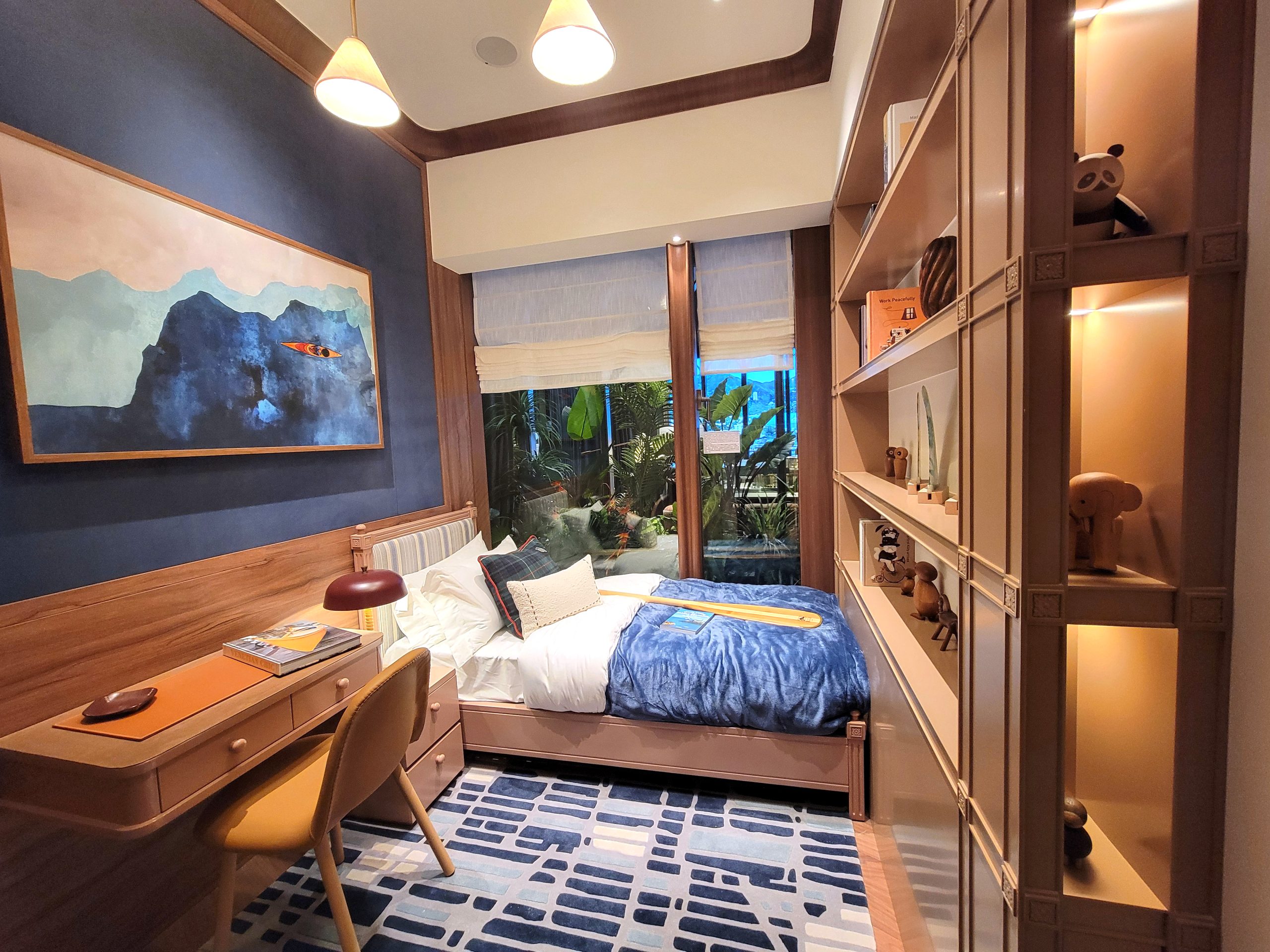 主人睡房則以酒店式設計為靈感,提供舒適的居住體驗。主人睡房配有高質感衣櫃組合,並設有趟板,以便隨時保持空間整潔與私密性,並將自然美融入日常,更增添居住的親切感。
