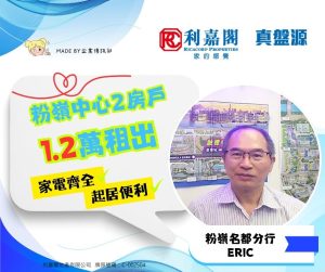 利嘉閣地產粉嶺-粉嶺名都分行聯席董事郭敏輝(Gary)稱,該行客戶經理劉文光(Eric)最新促成粉嶺中心1期E座中層8室的二手租賃成交個案,單位實用面積約368方呎,屬2房間隔,望樓景。