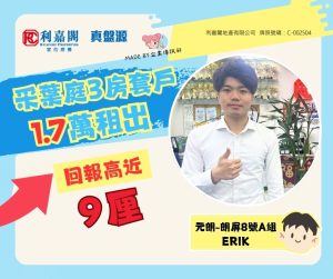 元朗采葉庭3房套戶1.7萬租出 業主2009年買入 回報高近9厘