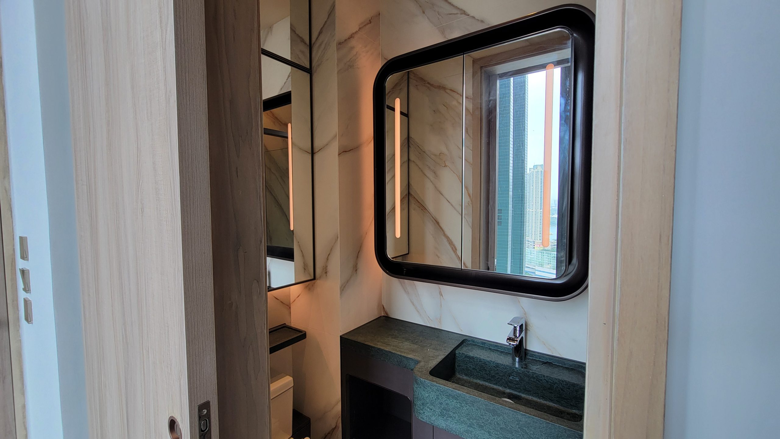 睡房屬套房設計,間隔方正實用,並設有特大玻璃窗,可廣納自然光線,提高室內採光度及空間感,更可欣賞遼闊城市景觀。廚房採用開放式設計,單位精選高級電器品牌,包括德國品牌西門子及Miele等,設備完善。浴室以米白色為 主色調,精選德國品牌 DURAVIT 及 Hansgrohe 衛浴配備,並裝設多用途鏡櫃,簡約時尚。天花設藍芽喇叭,帶來全方位音樂享受。 單位引入智能家居系統,可控制部分家電,包括日本Doshisha智能二合一環保扇燈,提供照明及調節順逆風功能,營造低碳舒適居所。大門採用Samsung 智能門鎖,入口設視像對講系統,住戶可透過Video Door Phone或手機App進行訪客身份確認。