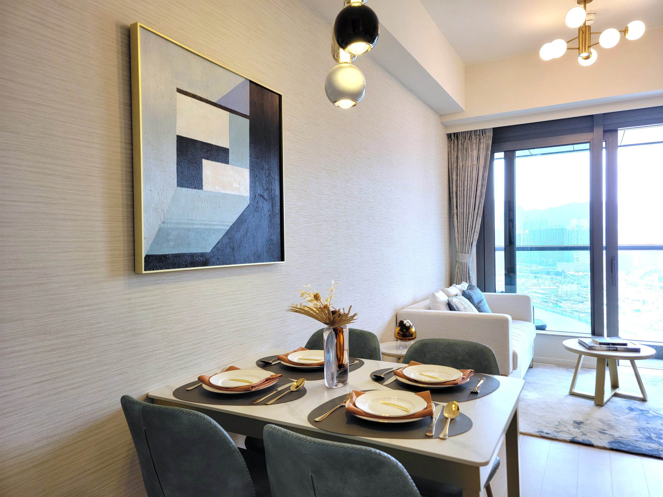 單位設計以悉尼海岸式生活為靈感,採用典雅柔和的米白色主調,呈現悉尼都市魅力。客飯廳深廣闊長,長約7.5米,闊2.6米,「全寬度」三合一露台與客廳寬度看齊,景觀更開揚,坐擁九龍灣畔Inner Harbour、世界級海濱長廊、園林、泳池等四重景致。