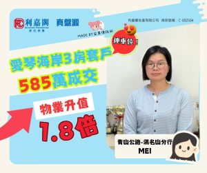 利嘉閣地產青山公路-滿名山分行經理黃錦鵬(Benson)表示,該行高級客戶經理郭美儀(Mei)日前促成屯門愛琴海岸1座低層F室連車位的二手成交個案,單位實用面積約751方呎,屬3房1套連儲物室間隔,望園景。
