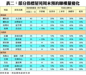 至於,港島區8個指標屋苑於本周末暫錄220組客戶預約睇樓,按周上升2.3%。利嘉閣地產杏花邨分行聯席董事黃銳平表示,近日受H按息口低企及一手市場暢旺等利好因素帶動,二手樓市氣氛轉趨向好,客人睇樓搵盤心態正面,杏花村周末預約睇樓量按周增加,而且踏入租務旺季,租賃活動開始活躍。他補充,現時大部分業主減價幅度降低,甚或不願意減價,買賣雙方要經一輪拉鋸,屋苑本月至今暫錄約4宗買賣,表現平穩。