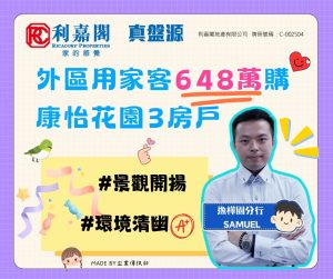外區客鍾情屋苑環境清幽兼配套齊 斥648萬購鰂魚涌康怡花園3房戶 Published 2025-06-17 · Updated 2025-06-17 利嘉閣地產逸樺園分行聯席董事吳玉蘭(Hody)稱,該行高級客戶董事譚達燊(Samuel)新近促成鰂魚涌康怡花園D座中層9室的二手成交個案,單位實用面積約596方呎,採3房間隔,外望開揚園景。 吳氏表示,新買家為外區客,早前經利嘉閣真盤源平台搵樓,見上述放盤即約代理睇樓。客人心儀單位景觀開揚,環境清幽寧靜,屋苑會所設施齊全,加上價格合理,睇樓後即洽購計劃自用。業主原以730萬元放售,經誠意洽商後,終以648萬元成交,折合實用面積呎價約10,872元。 據悉,原業主在2013年以約665萬元買入單位。 她補充,該屋苑現時有約250個單位放盤,最低入場價由約530萬元起。 同區二手筍盤同區新盤推介 促成代理 譚達燊Samuel Tam高級客戶董事(S‑429149)太古康怡(逸樺園分行)立即到WeChat掃描QR Code或手動輸入WeChat IDWeChat ID:85292897061複製取消立即掃描QR Code聯絡代理香港:92897061複製取消 利嘉閣精英會 五日四夜「三亞之旅」 感受迷人海島風光 盡享奢華度假體驗 企業動向 2025-06-17 by Connie Li · Published 2025-06-17
