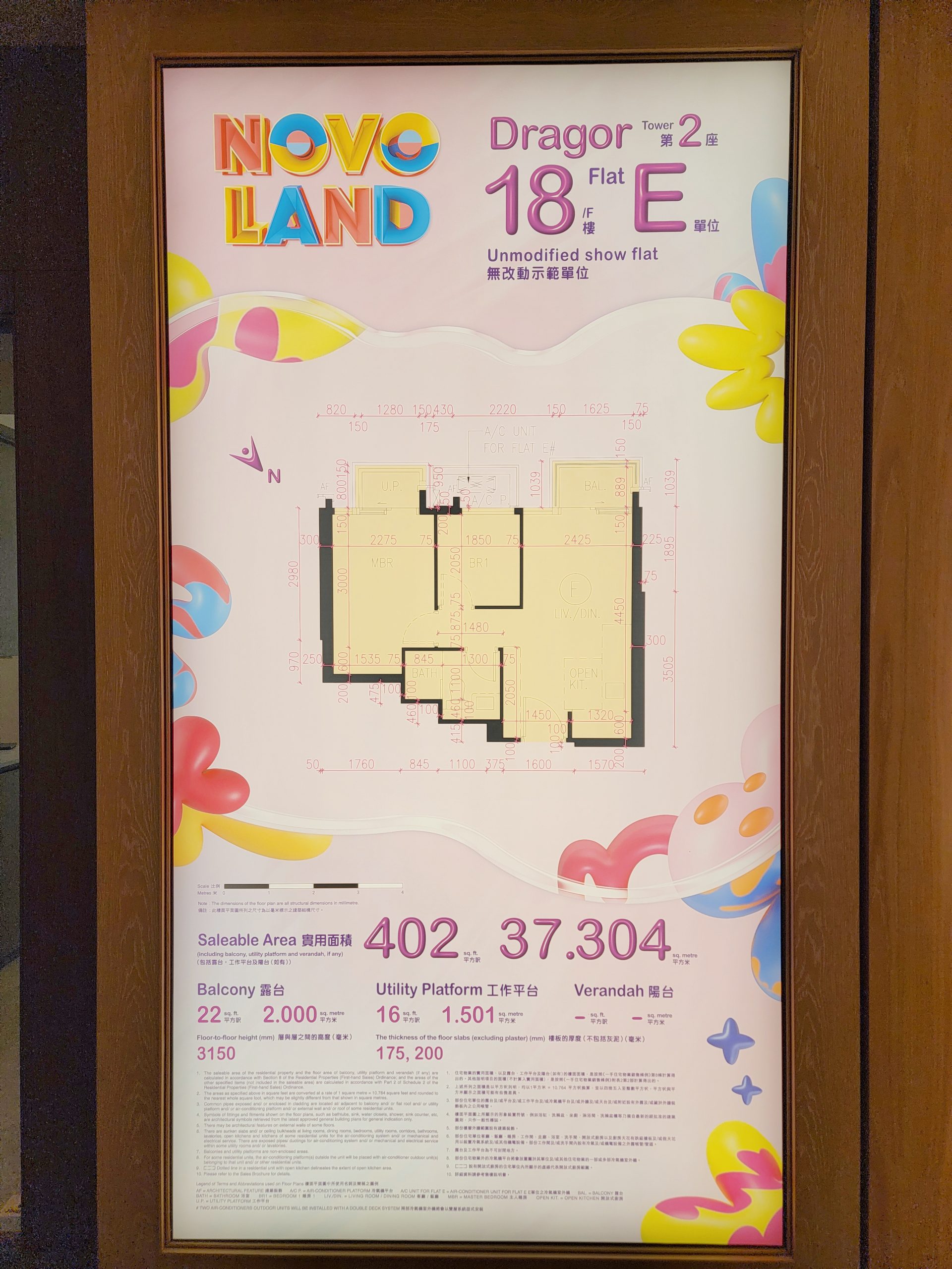 Dragor第2座18樓 E 單位為兩房開放式廚房間隔設計,層與層之間的高度最高達3.15米,實用面積為402方呎,包含一個 22方呎露台及一個連接主人睡房16方呎工作平台,為住戶締造寬敞的戶外生活空間,適合小型家庭入住,打造幸福理想居所。