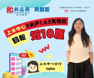 上水中心3房戶1.63萬租出 業主1992年買入 現享回報高近10厘