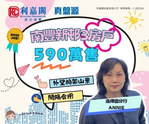 利嘉閣地產逸樺園分行聯席董事吳玉蘭(Hody)稱,該行客戶經理蔡秋英(Annie)新近促成鰂魚涌南豐新邨2座高層E室的二手成交個案,單位實用面積約516方呎,採3房間隔,外望開揚會所及內園景觀。