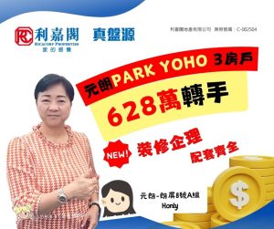 利嘉閣地產元朗-朗屏8A組分行助理分區經理吳紫旭(Yoyo)表示,該行客戶經理馬倩紅(Hon­ly)日前促成元朗PARK YOHO 2C期35B座中層B室的二手成交個案,單位實用面積約632方呎,屬3房連梗廚設計,外望開揚景觀。