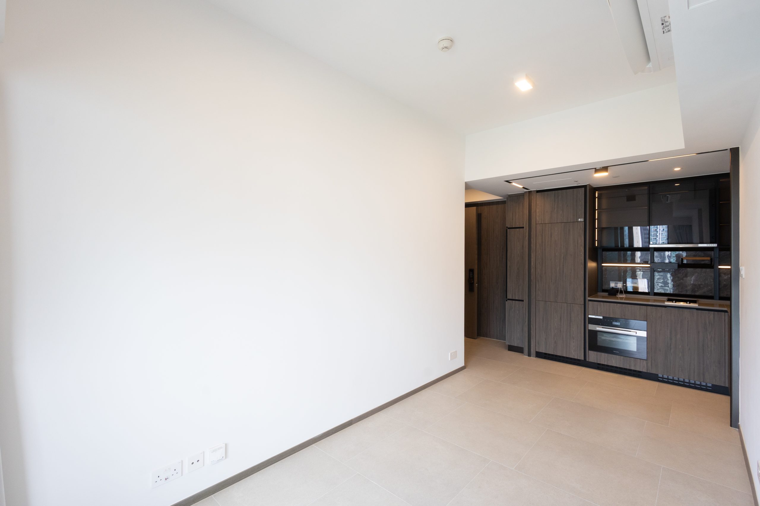 另一個交樓標準示範單位為第5座中層A8室,實用面積509方呎,兩房開放式廚房間隔,外望內園泳池及車站廣場景觀。