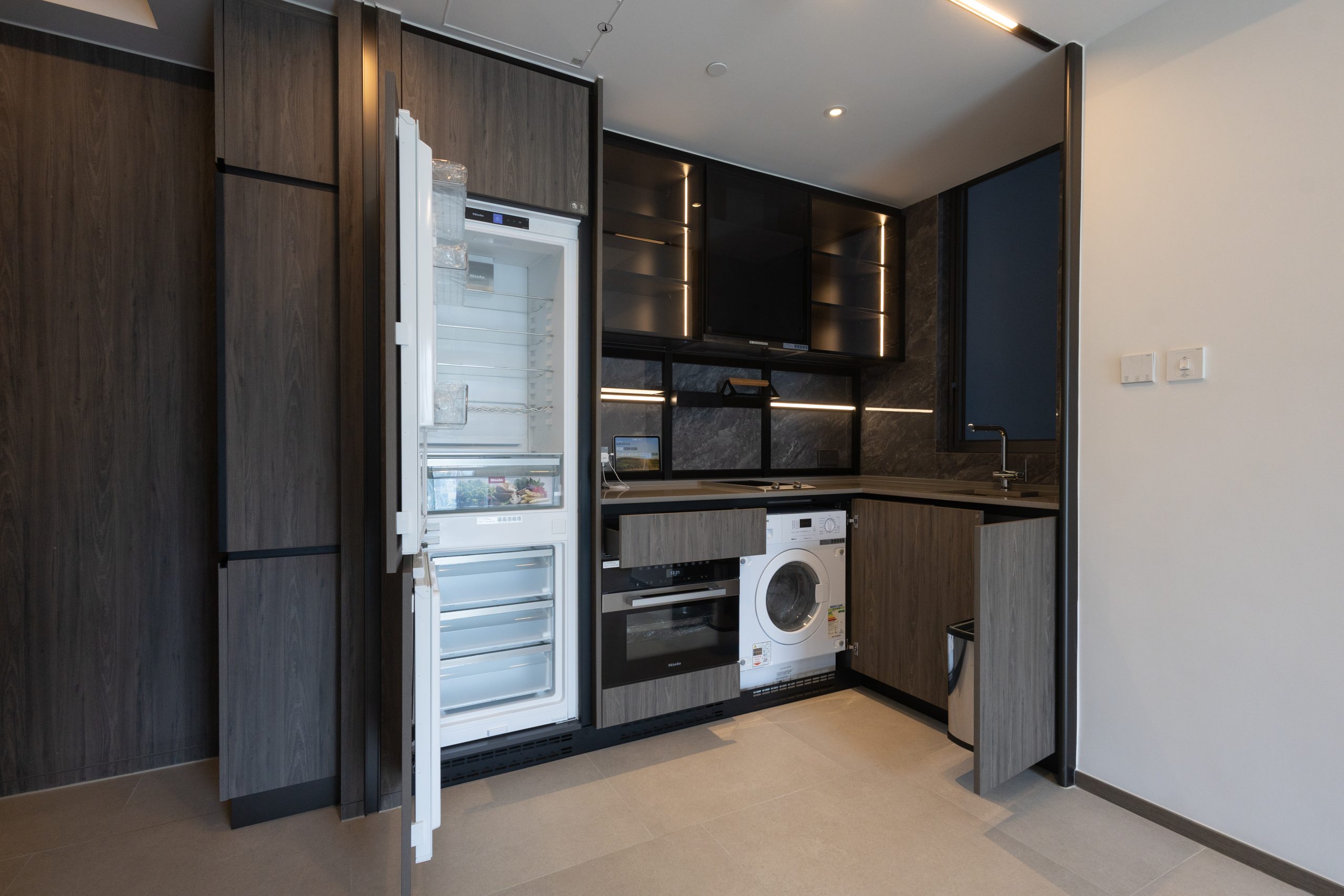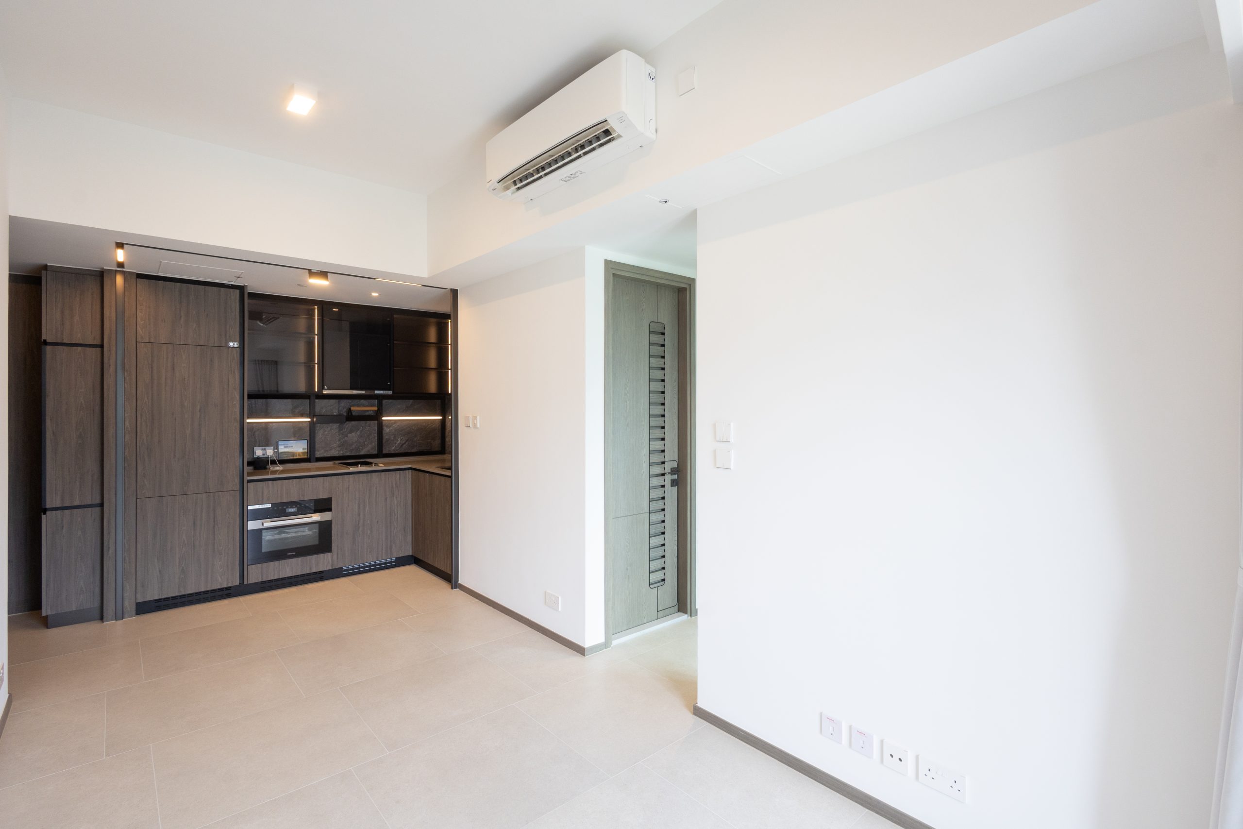 該盤首度開放現樓示範單位,其中3座高層A室,實用面積1,993方呎,屬第1期分層單位面積最大,四房雙套及工作間間隔,擁有私人電梯大堂。巨型客飯廳極具空間感,連面積約118方呎露台,飽覽啟德城中心,以及眺望維港海景,同時四間睡房與客飯廳同一坐向,享相同景觀。