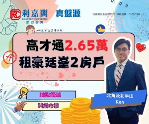 利嘉閣地產北角及北半山高級分區董事梁啟豪(Ken)稱,該行近日促成北角半山豪廷峯2座中層D室的二手租賃成交個案,單位實用面積約569方呎,採2房間隔,外望開揚城市景觀。