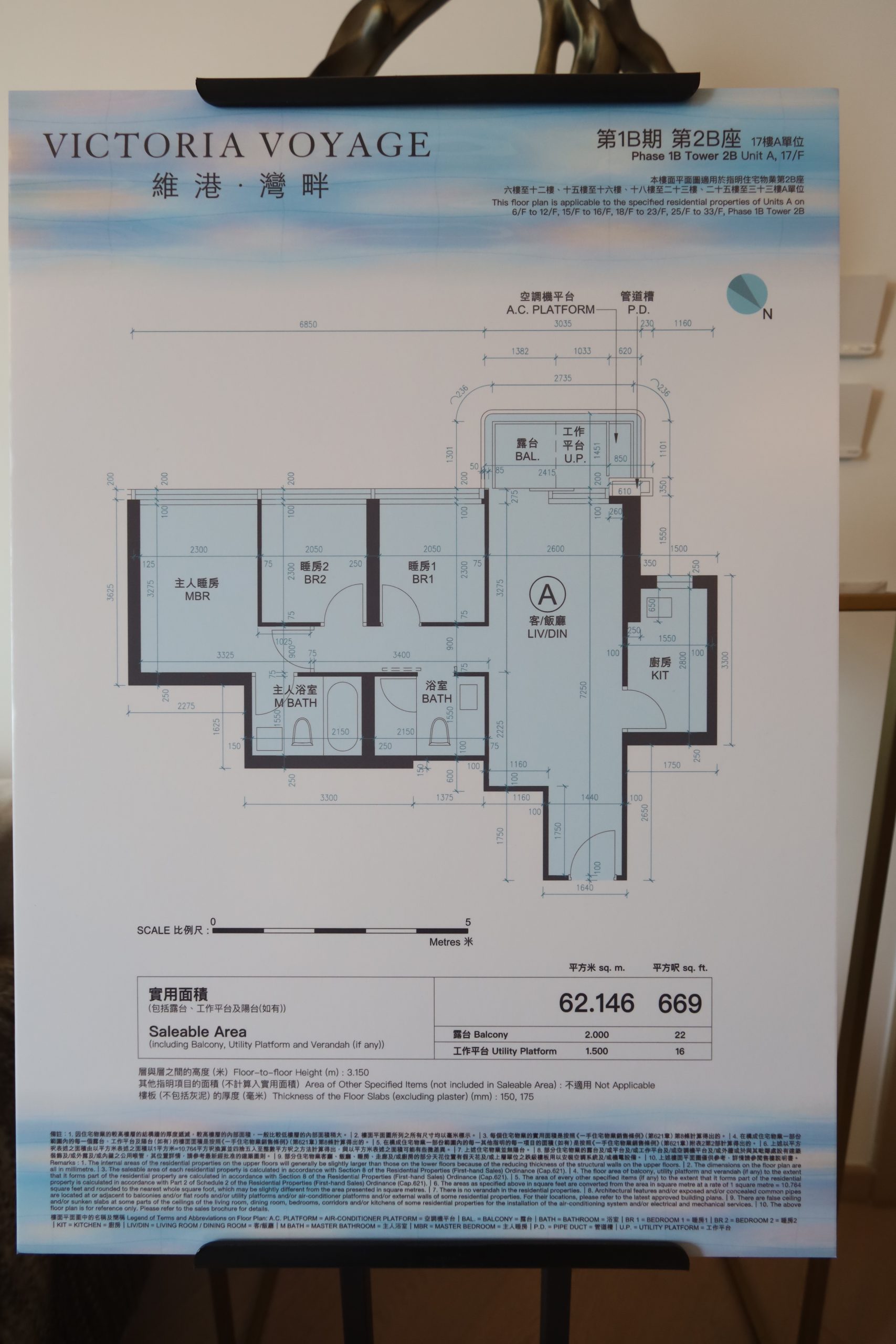 第1B期2B座17樓A室是連傢私無改動示範單位,實用面積669方呎,單位座向西南方,屬於三房一套梗廚間隔。單位樓層與樓層之間高度約3.15 米,採用Low-E中空玻璃幕牆,大大提升單位採光度及空間感。