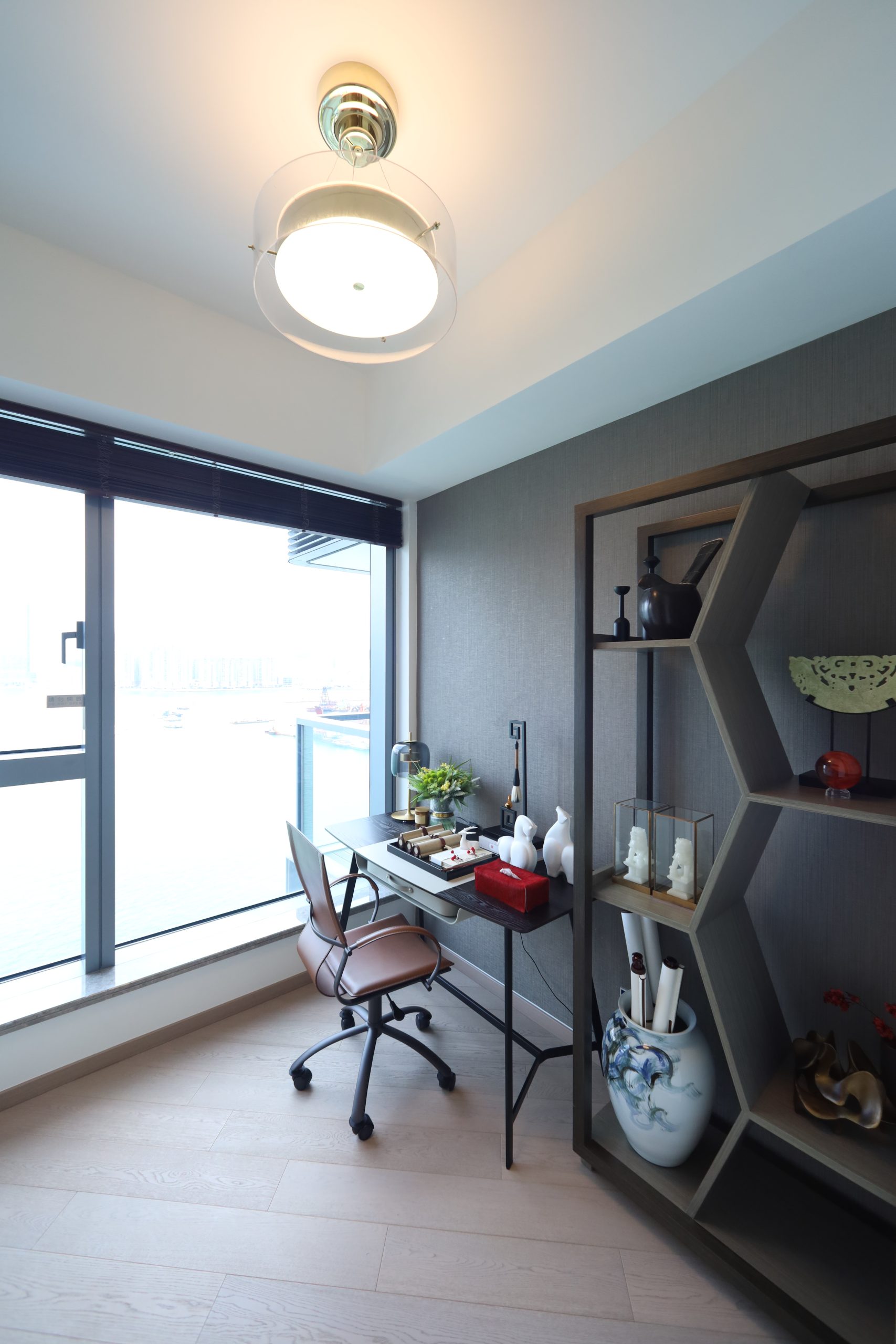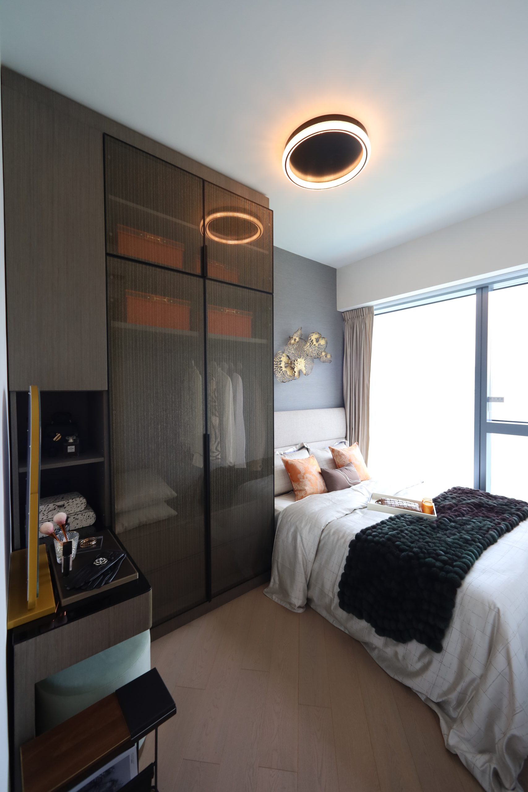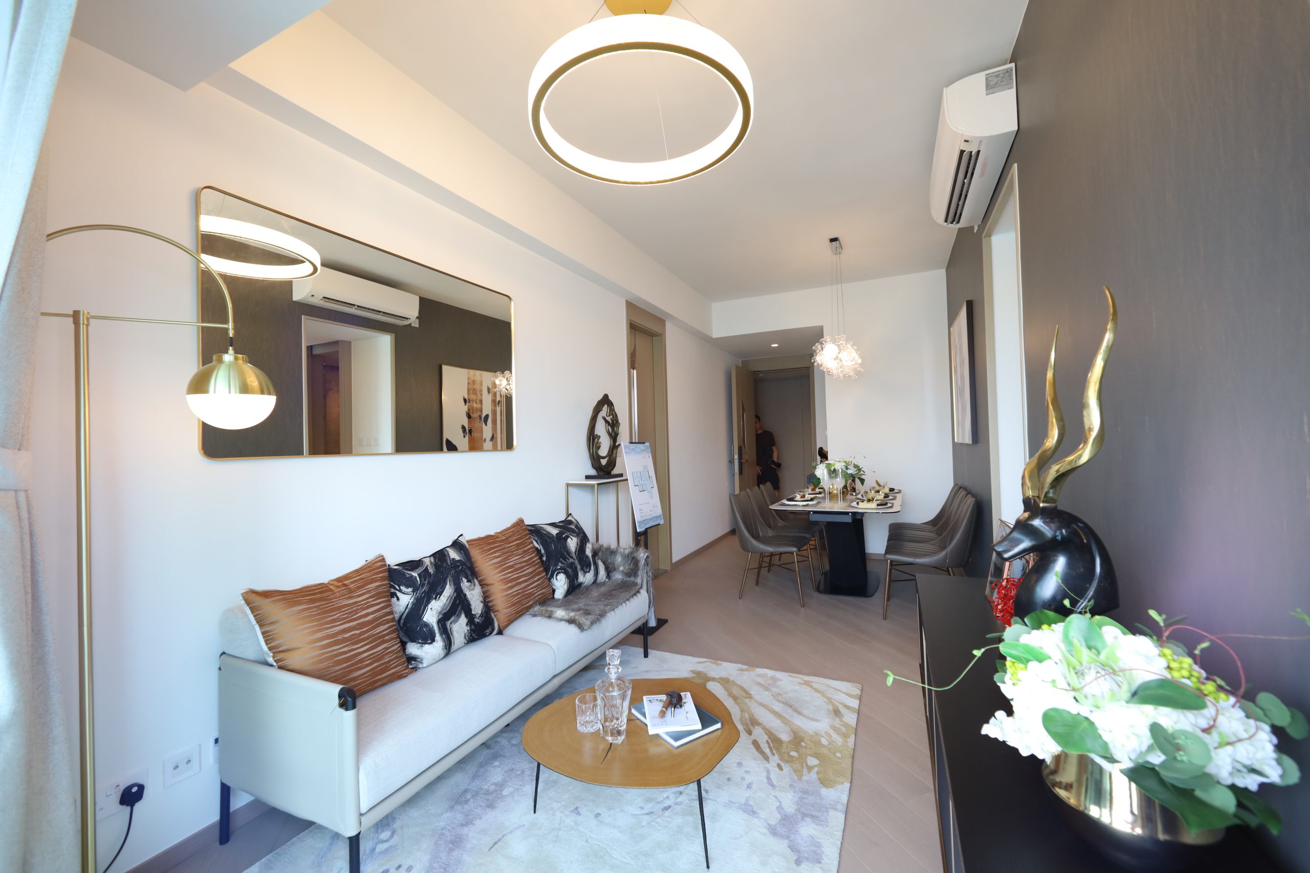 維港•灣畔示範單位|669呎連家具三房戶 深棕金銅色系強調風格藝術(多圖有片)|啟德新盤