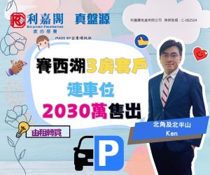 利嘉閣地產北角及北半山高級分區董事梁啟豪(Ken)稱,柏傲山分行A組客戶董事曾夢螢(May)新近促成北角半山賽西湖大廈8座高層A室連車位的二手成交個案,單位實用面積約1,124方呎,採3房1套連工人套房間隔,外望開揚景觀。