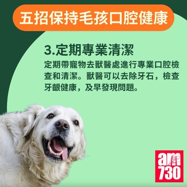 定期帶寵物去獸醫處進行專業口腔檢查和清潔。獸醫可以去除牙石,檢查牙齦健康,及早發現問題。