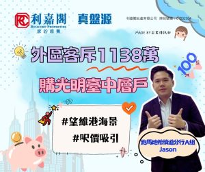 梁氏表示,新買家為外區客,早前經利嘉閣真盤源平台搵樓,見上述放盤即約代理睇樓。客人心儀單位外望無敵維港海景,附近環境清幽,鄰近銅鑼灣生活圈,區內生活配套齊全,加上意向呎價吸引,睇樓後即進行洽購。業主原以1,208萬元放售,經誠意洽商後,終以1,138萬元合理價成交,折合實用面積呎價約15,568元。