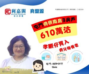 利嘉閣地產屯門-珀御分行高級經理陳志偉(Joe)稱,該行高級客戶經理羅玉蓮(Silvia)最新促成屯門倚嶺南庭中層H室的二手成交個案,單位實用面積約733方呎,屬3房1套間隔,望內園景。