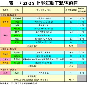 上半年私宅落成破1萬伙 三年同期新高 私宅動工量上半年僅1,014伙 史上最少