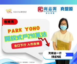 息口下行 外區客棄租轉買 斥290萬購元朗PARK YOHO開放式戶