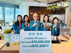 由中國海外發展、九龍倉集團、恒基地產及嘉華國際發展的啟德海灣半島Park Penin­su­la全新項目「維港.灣畔」第1A期迎海門,今日(18日)以招標形式售出2伙臨海大宅,總成交金額為4,969.6萬元,平均成交呎價30,358元。