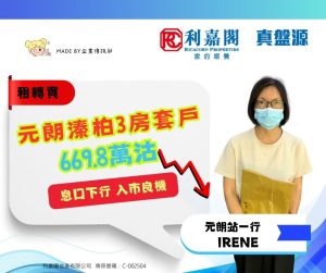 息口下行 新買家棄租轉買 斥669.8萬購元朗溱柏3房套戶