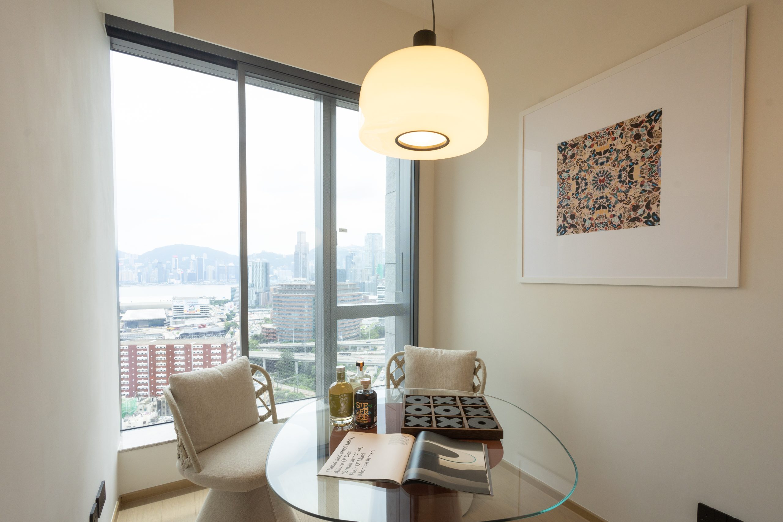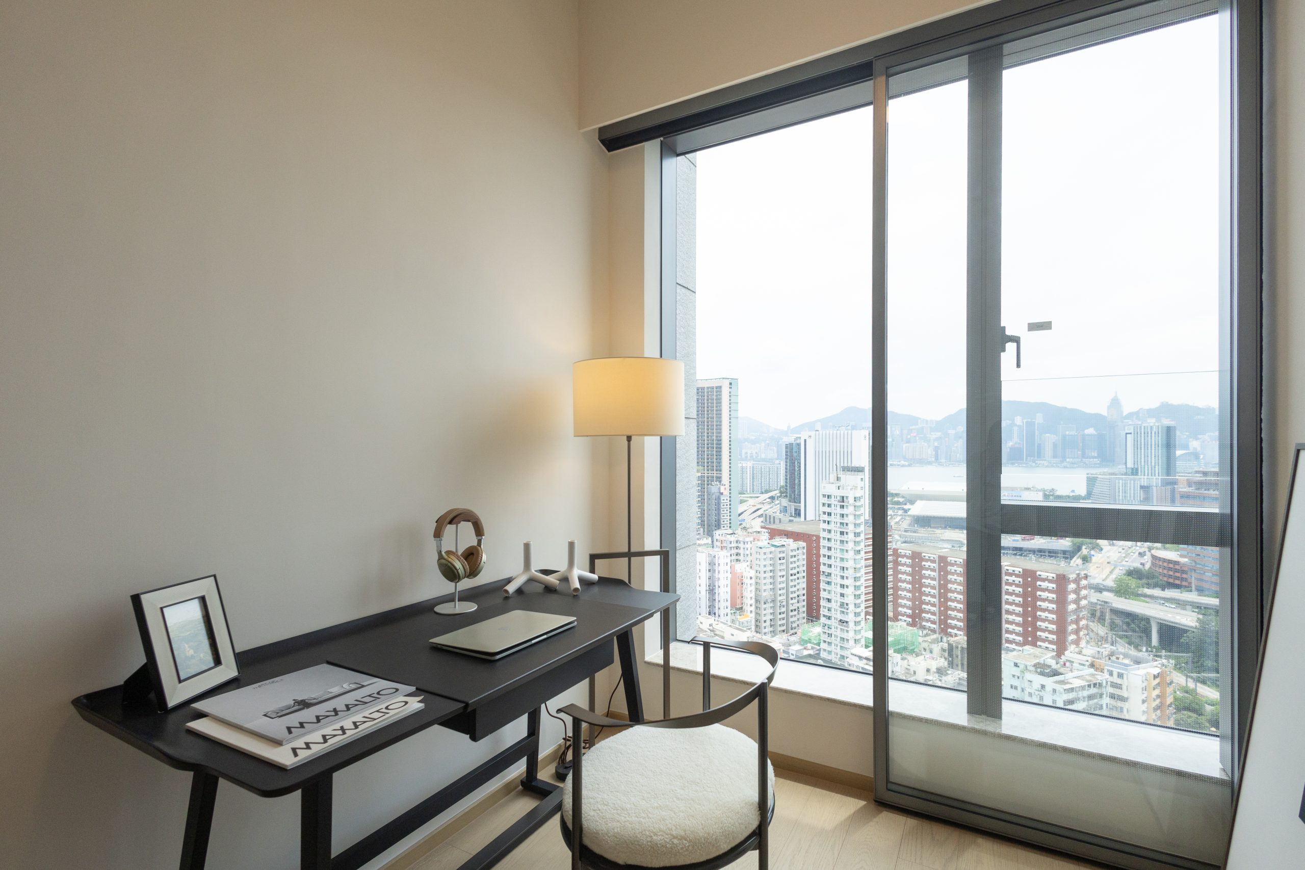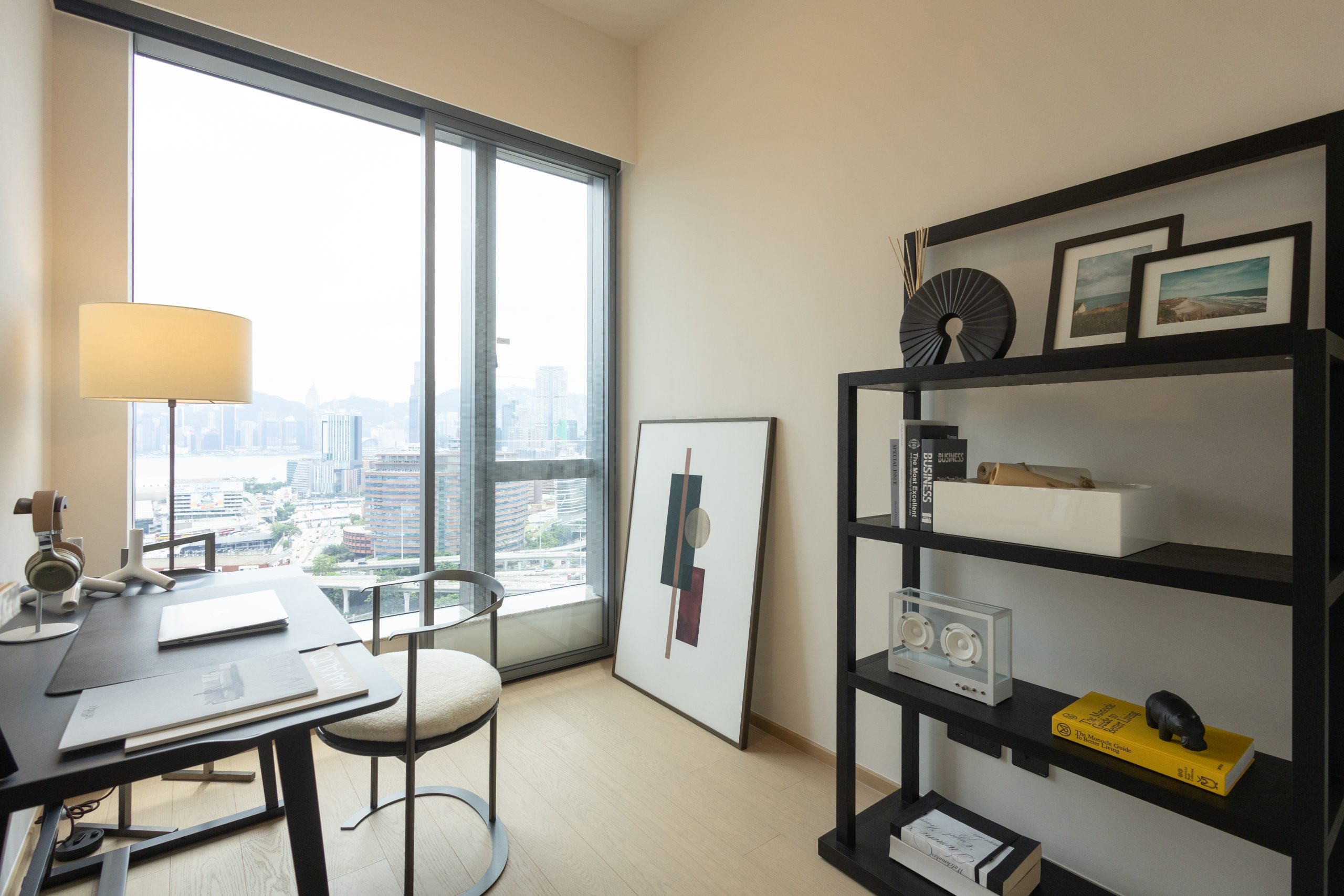 COLOURLIVING將單位其中兩間睡房改為娛樂室及書房,呈現優雅的生活態度。娛樂室全數選用B&B Italia品牌傢具,強調意式風格的簡潔精緻,座椅與桌子均出自設計師Monica Armani之手,特色的圓錐金字塔型底座設計,令人眼前一亮。米白色座椅椅背更以傳統意式編織手法製作,體現B&B Italia品牌結合古典與現代的韻味;娛樂室與客飯廳同樣享有向南維港景色,閑暇時間可以與親友一邊欣賞醉人維港景色,一邊玩樂閒聊。書房間隔方正實用,選用 MAXALTO品牌傢具,以柔和綫條打造恬靜俐落的工作空間,展現品牌設計總監─Antonio Citterio的設計美學。簡約風格更加突出窗外維港海景景色與維港兩旁的地標建築,早上自然光曬落,晚上欣賞璀璨的維港天際線。