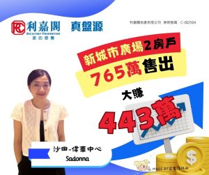 利嘉閣地產沙田-偉華中心分行聯席董事李偉佳(Michael)稱,該行資深客戶董事麥港慧(Sadon­na)日前促成沙田新城市廣場銀樺閣中層B室的二手成交個案,單位實用面積約583方呎,屬2房間隔,望樓景。