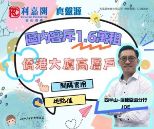 利嘉閣地產西半山營業董事鍾肇基(Kenny)稱,西半山-羅便臣道分行客戶董事劉偉雄(Joe)日前促成上環僑港大廈高層C室的二手租賃成交個案,單位實用面積約334方呎,採開放式間隔,外望城市景觀。