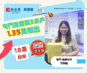 區內客1.35萬即睇即租屯門盈豐園3房戶 業主03年沙士後低價購入 現享18厘回報