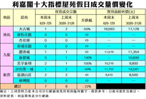 《利嘉閣十大指標屋苑假日二手實況》業主看好後市 觀望利好消息 十大屋苑周末7宗買賣 近七周新低